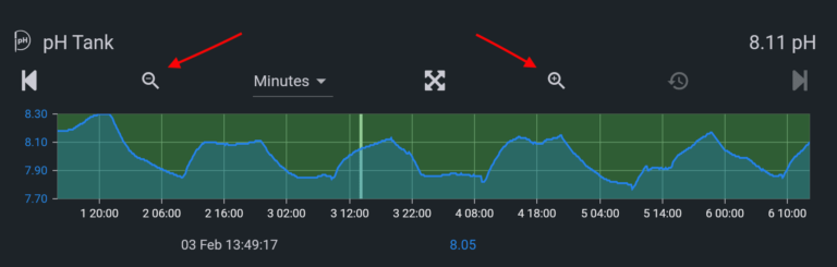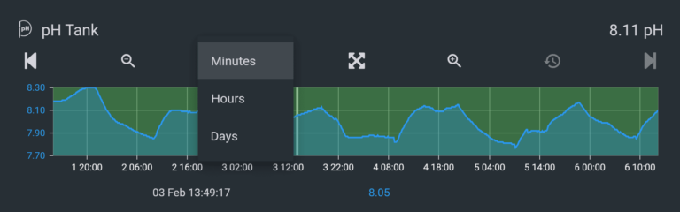 Minutes: The graph will display seven days of data at 10-minute intervals. You can zoom out to 30 days maximum.